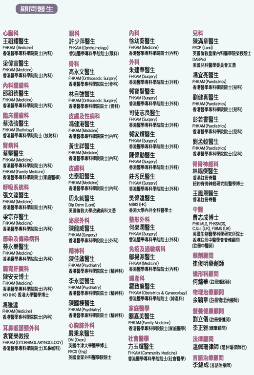 為確保內容質素和資料的真確性,雜誌誠邀數十位醫療界內的專業權威人士擔任雜誌顧問,陣容鼎盛的醫學專科顧問團涵蓋逾三十個專科範疇,包括內科、外科、婦產科、兒科、腫瘤科、心臟科、物理治療、營養學及中醫等等,為雜誌的專業性打造最強大的後盾。
