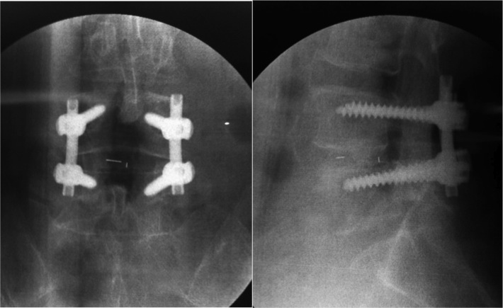 ■做完減壓及融合後的X光,只有利用外科手術才可將椎體滑脫復位。