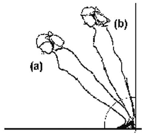 (a) 穿着4吋鞋踭高跟鞋會令身體傾斜度 改為45°。
