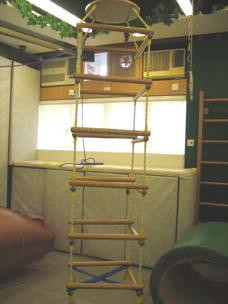 前庭敏感會影響平衡感,鞦韆、攀爬工具都可以幫助患者克服有關問題。攀爬工具讓他們有用力氣的感覺,活動關節和肌肉,幫助一些平日較不敏感的地方,透過成功的經驗,讓神經系統知道這些感覺是沒有問題的,可以處理的。
