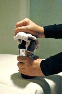 目的:訓練手腕肌力。用毛巾包着汽水瓶的樽蓋, 增加接觸面,然後旋轉扭動蓋子,訓練手及手腕的肌力。